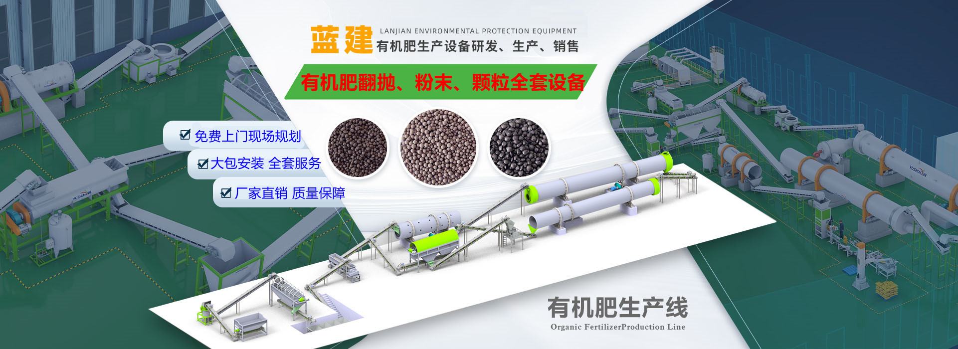 河南藍建環保設備有限公司 (一)公司簡介 河南藍建環保設備有限公司是河南省肥料設備研發型公司。河南藍建是我公司的注冊商標,現已成為行業內較大的肥料設備品牌。為客戶提供工藝設計、設備生產、安裝調試、人員培訓一站式服務。 公司擁有高級工程師領隊的研發團體,擁有一支高素質、年輕化、富于創新的生產團隊,是有機肥加工行業的骨干企業,我公司的有機肥機械設備有:有機肥生產線、有機肥翻推機、有機肥粉碎機、有機肥造粒機、有機肥烘干機、有機肥冷卻機、有機肥包裝機、自動配料機以及相關的有機肥機械配套設備,河南藍建環保設備有限公司是一家專門從事有機肥生產設備、研發、